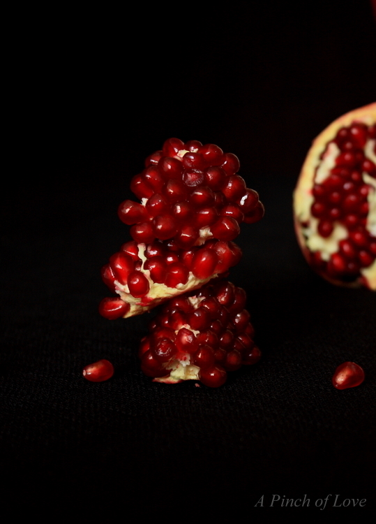 Wow! such eye popping pictures you take Ananda! Love the ruby red pomegranates and that tiny pine apple- even though I hate pineapple too! Get an itchy throat from them.