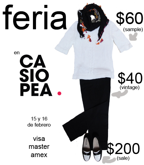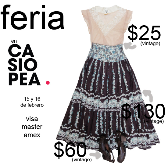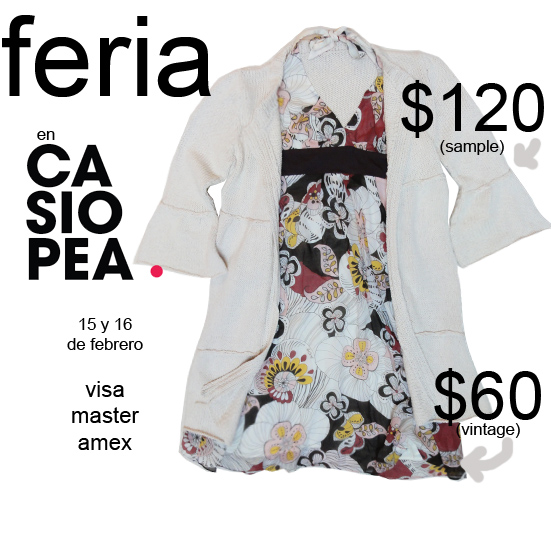 Les cuento que estamos preparando la FERIA (vintage+sale+sample) para el 15 y 16 de FEBRERO; (las que ya saben, ya saben). Para las que no, les cuento que es una feria de dos a tres días en la que vendemos de todo: usado y antiguo (es decir, cosas robadas del ropero de madre, abuela o tía). Liquidación a full de la ropa de temporada. Temporadas anteriores (invierno y verano). Y samples (muestras, o sea, prendas imperfectas a precios ridículamente baratos).
