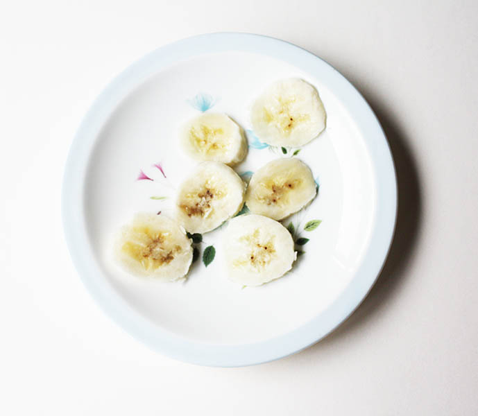 On the baking tray dollop a tablespoon of the mixture leaving enough room around the biscuits to spread a little. Decorate with extra slices of banana or walnut.