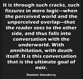No, I'm not joking. This really is a declaration of literary principles. Compare Dominic Stansberry's brilliant essay NOIR MANIFESTO, one pertinent passage of which appears below: