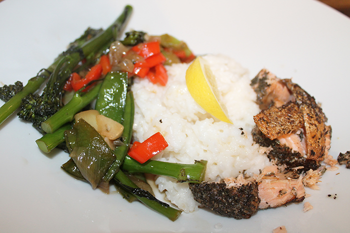 A new foodie post and this one is a super healthy dinner option. This Green Tea Salmon with Coconut Rice and Wok Fried Greens is a great dinner for those wanting something easy, delicious and healthy with Chinese/Thai inspirations. This was really popular with Dann, especially before training in the evenings, and a great way to get in that all important fish into your diet.